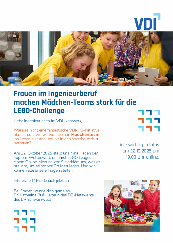 Für euch, liebe Ingenieurinnen aus dem Bodenseekreis, der Schweiz, aus Vorarlberg und Liechtenstein, werde ich gemeinsam mit Dr. Katharina Buss, AK Leiterin vom FIB im BV Schwarzwald, tolle Aktivitäten und Netzwerkmöglichkeiten anbieten: Um uns gegenseitig zu unterstützen, um mitzugestalten, um zu lernen und um Spaß zu haben.