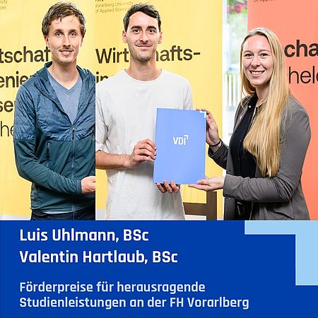 Auch in diesem Jahr hat der VDI Bodensee-Bezirksverein zwei Förderpreise für herausragende technische Abschlussarbeiten an FHV-Studierende vergeben.